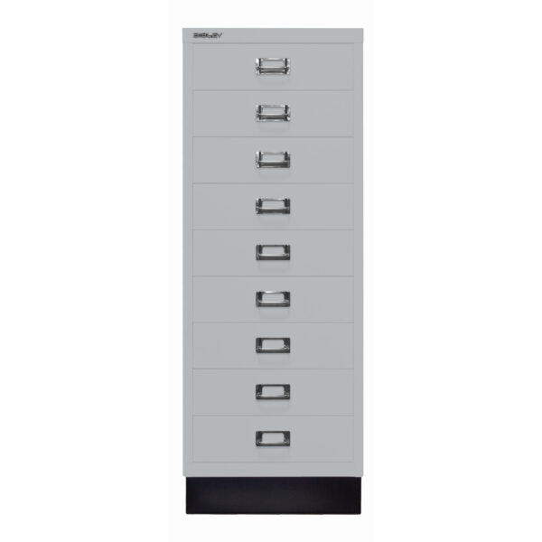 Der Bisley MultiDrawer™ – Die elegante Lösung für Platzsparer. Der Schubladenschrank der 39er Serie im Format DIN A3 und mit schwarzem Sockel bietet in 9 Schubladen mit einer Höhe von 87 mm Platz für Ihre Unterlagen. Chrombeschichtete Etikettenhalter und Griffe auf allen Schubladen prägen das beliebte Design der MultiDrawer™. Die Garantie beträgt 5 Jahre. Maße: H 940 x B 349 x T 432 mm.