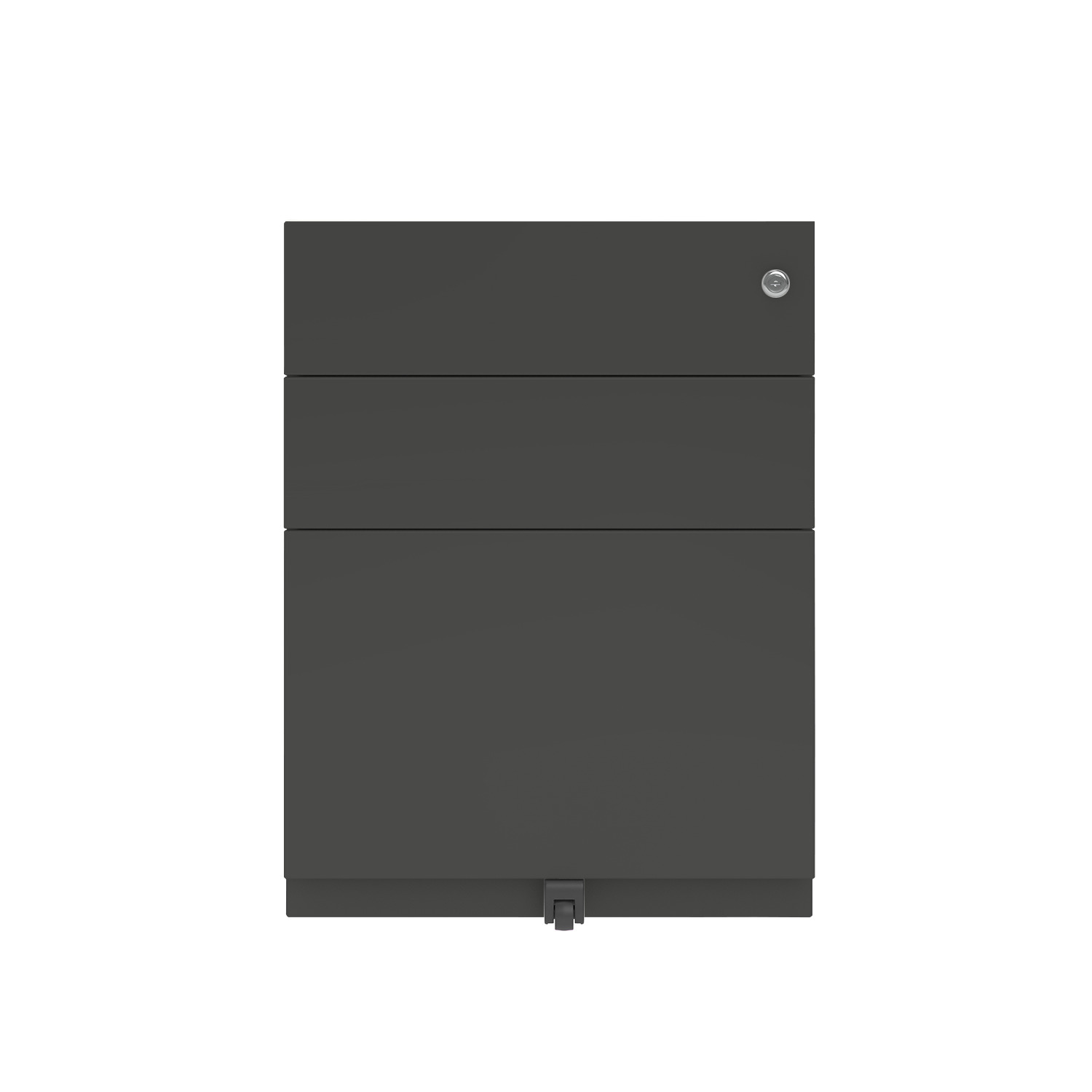 Diese modernen Rollcontainer überzeugen durch ihr geradliniges Design mit seitlicher Griffleiste und passen perfekt in jede Büro- oder Homeoffice-Umgebung. Vier unsichtbare Lenkrollen ermöglichen eine flexible Positionierung, während die fünfte Rolle zur Kippsicherung bei einer Hängeregistraturschublade für zusätzliche Stabilität sorgt.